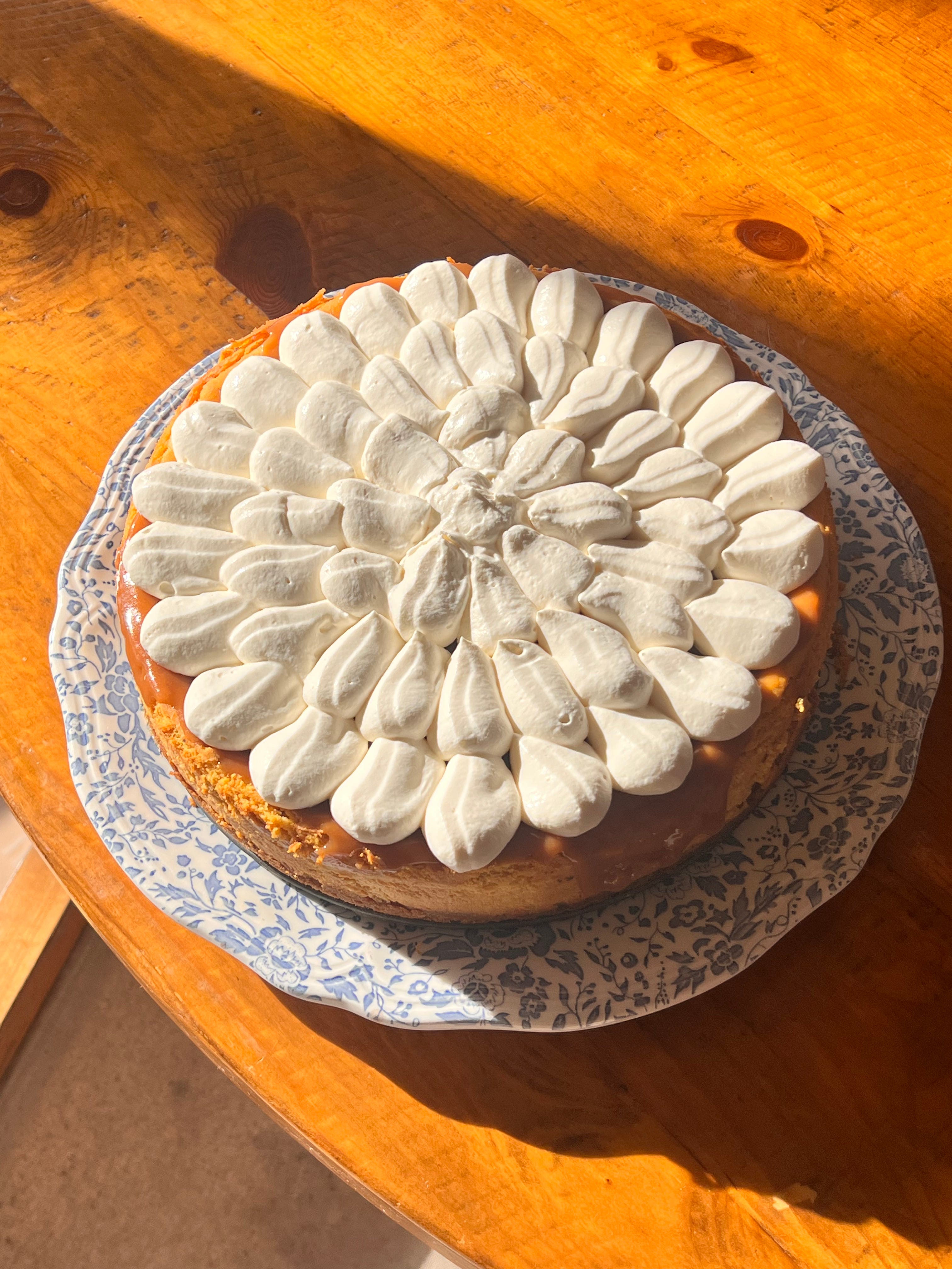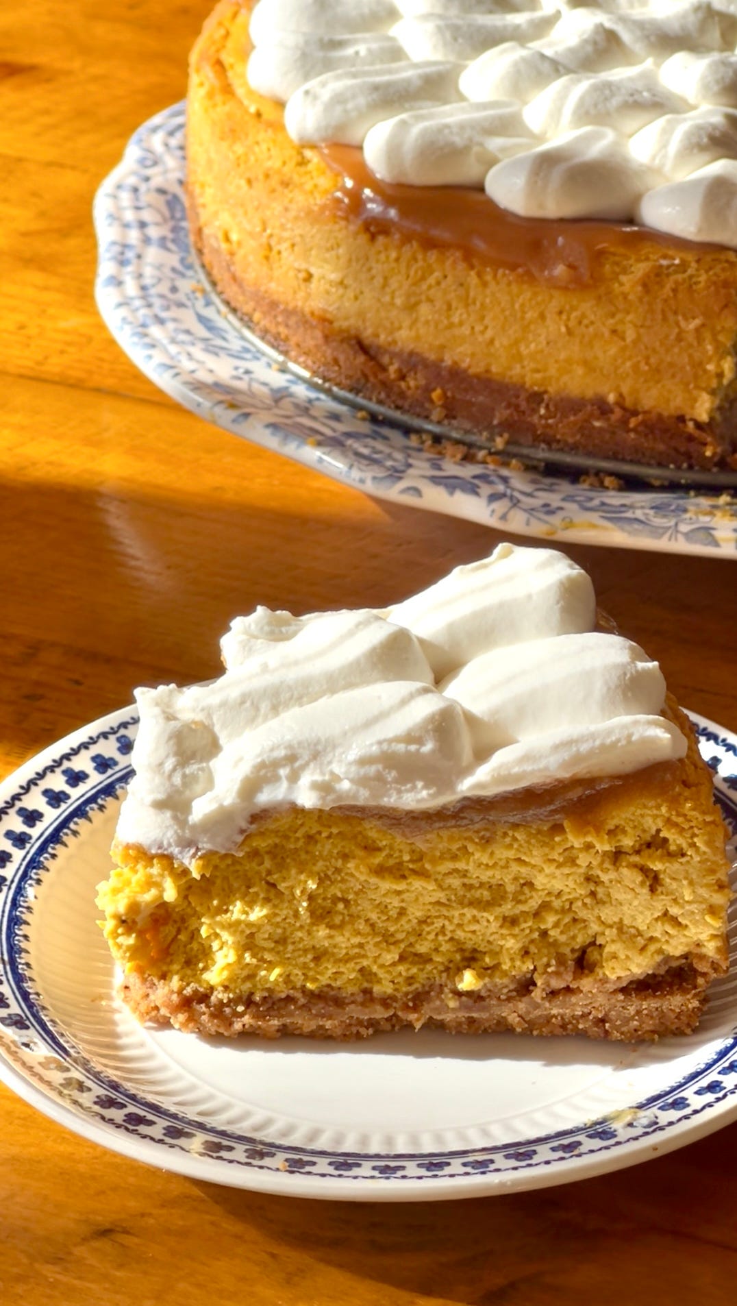 This is the dessert to make if you’re ready to mix things up for Thanksgiving but still want those cozy pumpkin pie flavors. My husband actually requested this one — it combines two of his favorites: cheesecake and pumpkin pie. I added a layer of tahini caramel for a nutty undertone and scaled back the sugar in the cheesecake to balance the sweetness. A little Greek yogurt (or sour cream) in both the cheesecake and whipped topping lightens things up just enough, and a browned butter graham cracker crust ties it all together. It’s rich, layered, and a total showstopper.